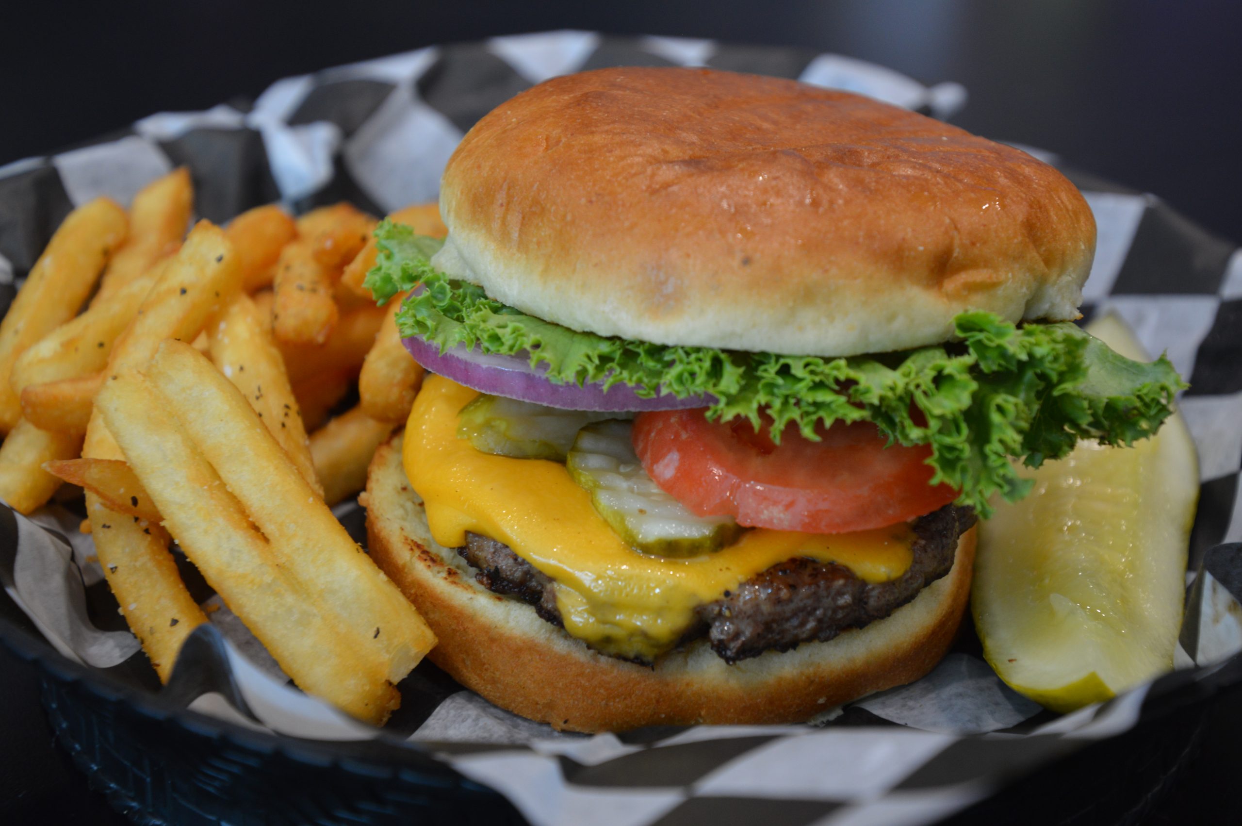 Chargrilled Patty with American cheese, lettuce, tomato, red onion and slice pickles. Served with seasoned fries and a pickle.– $3 OFF.