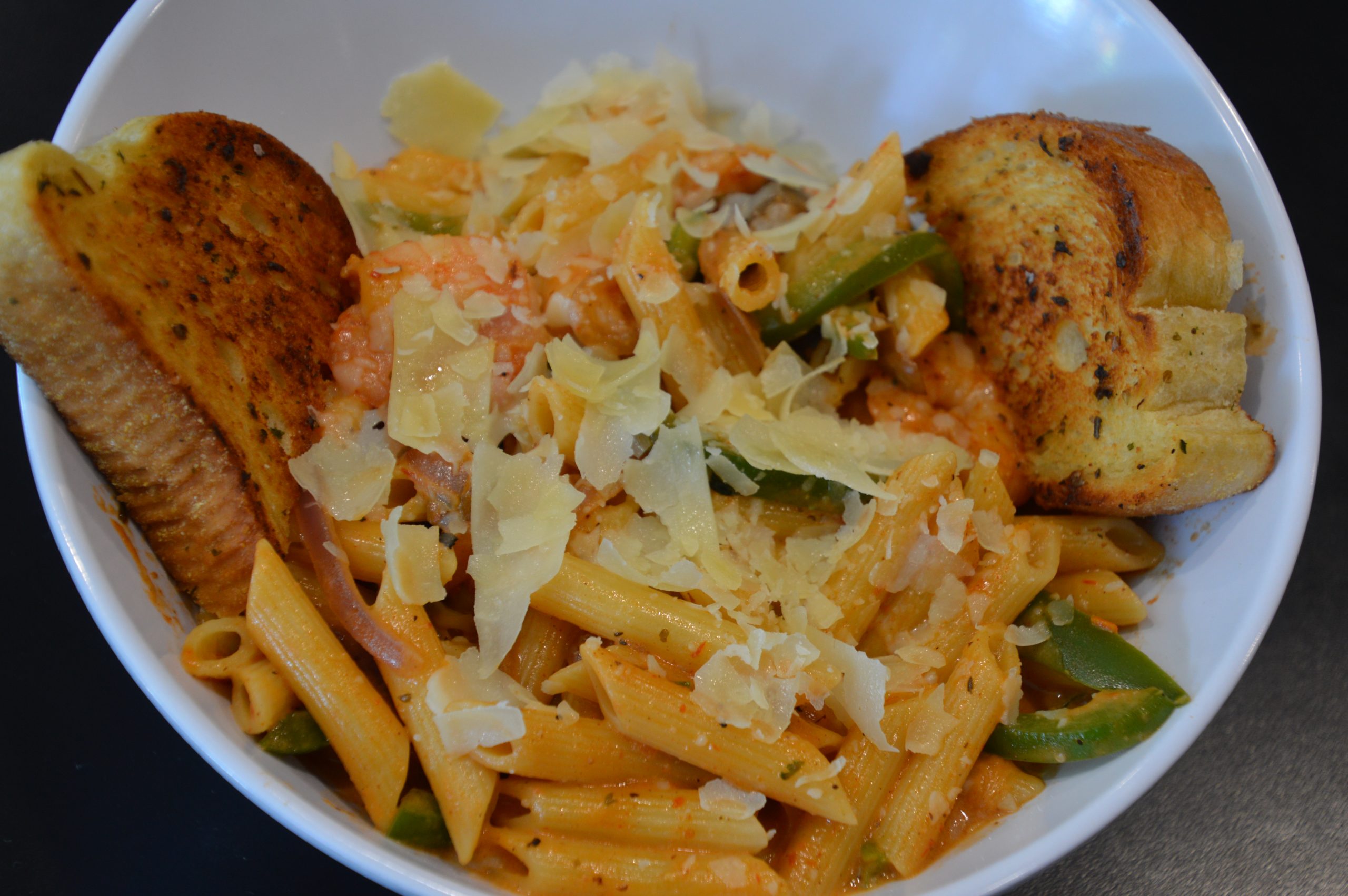 Pasta dish for $21.99. Choose from Chicken Alfredo, Spicy Shrimp Pasta or Penne Pasta & Meatballs.